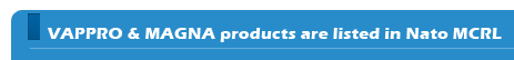 The identification, classification and stock numbering of the entire range of Vappro and Magna Products have been made accessible through the NATO Master Cross-Reference List (NATO MCRL).